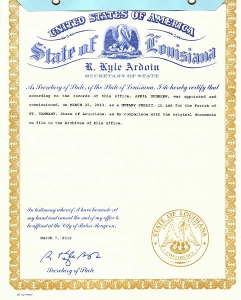 州务卿办公室将对路易斯安那州官员,县职员,州登记官和公证员的签名进行验证。