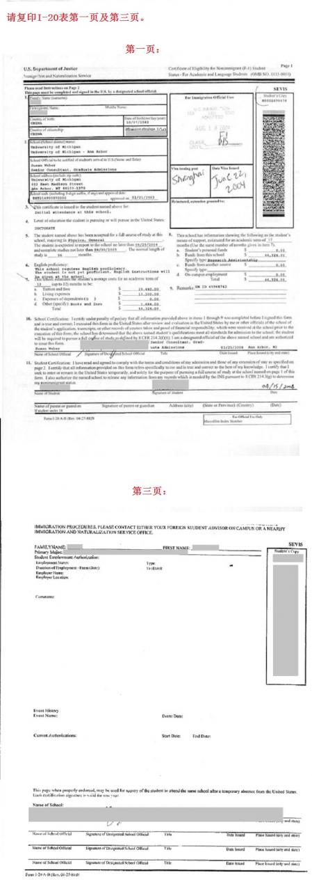 可用首次入境所用签证表(I-20)复印件代替,签证表上须有相应留学阶段的首次抵美入境章。并说明您未能提供首次入境签证的具体原因(我的是护照丢了,我就自己写了一个护照遗失说明,讲述了下护照丢失的时间、地点和过程),